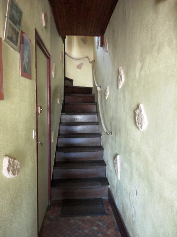 Le bâtiment présente des éléments authentiques : toiture en ardoises naturelles, huisseries en bois et une cheminée fonctionnelle qui apporte une atmosphère chaleureuse. L'ensemble se développe sur deux niveaux et deux mitoyennetés. Une partie de la toiture arrière nécessite une réfection - un point à prévoir dans les travaux de rafraîchissement recommandés pour moderniser l'ensemble.